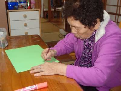 隣の母が上手に書く姿を見て