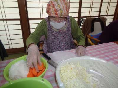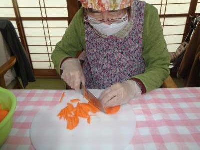 人参やキャベツなど、食材を食べやすい大きさにカットして