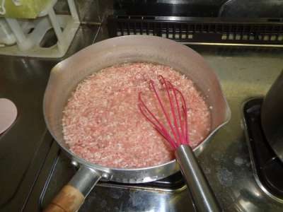 そぼろ丼なので、卵と挽肉を使って調理していきます