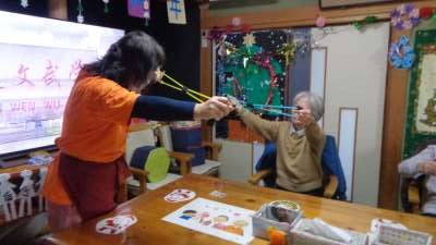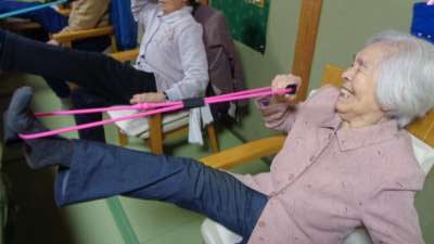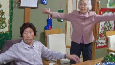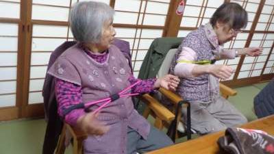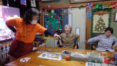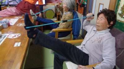 腕を上げたり、下げたり、しっかりと身体を動かします