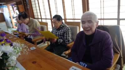 幸せの三ケ条を唱和した後、ぼけたらあかんメモを唱和