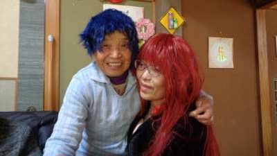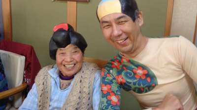 母たちの中には、カツラをかぶって歌ってくれる方もいま