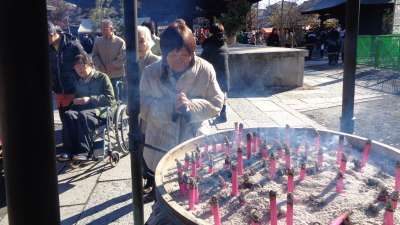 お賽銭を投げて、母達手を合わせて一生懸命お願いされていました