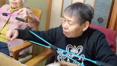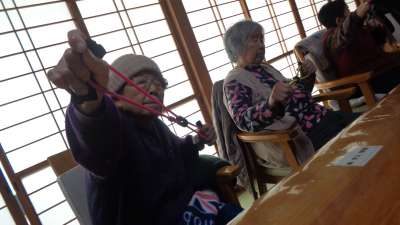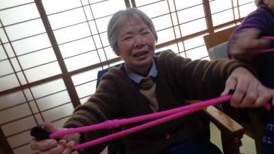 午前は、ゴム体操です
