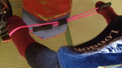 輪っかの部分を足にひっかけて伸ばす事により