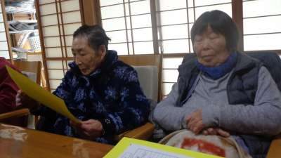 幸せの三ケ条を唱和した後、ぼけたらあかんを唱和しま