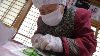 アルコール消毒を済ませてから、調理に入ります