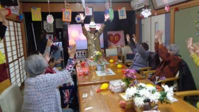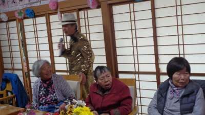午後レクは、オーナーの歌謡ショーです