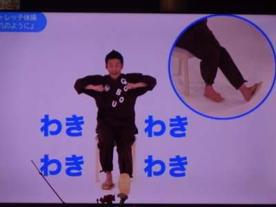最後は、前かがみの体操など、身体全体を万遍なく動かし、