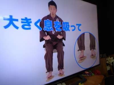 ごぼう先生『大きく息を吸って~』足を少し上げます