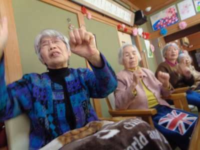 皆様、画面を見て口ずさむように歌ったり、手拍子を叩いたり