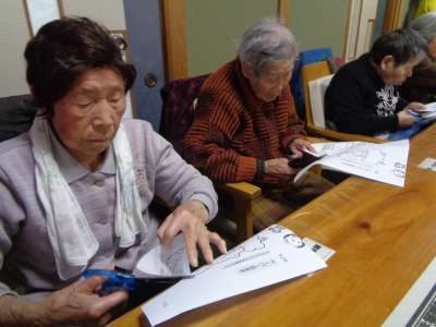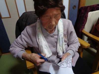 ハサミを巧みに使い、線にそって切り取っていきます