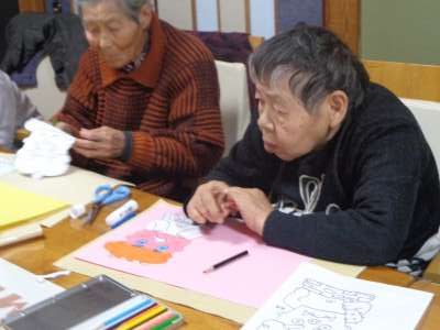 レクは鬼の絵を切っています