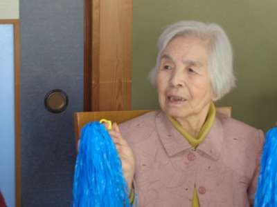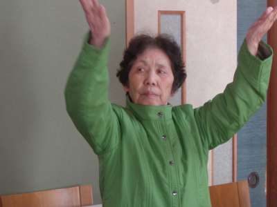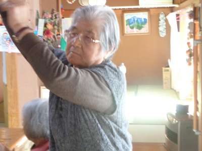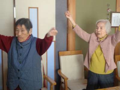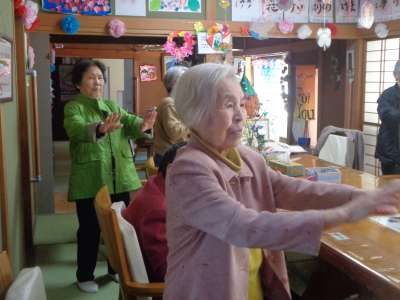 リズムにのって、手を上に上げたり、手を横に出したりして、