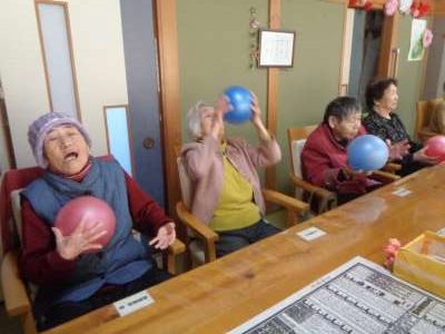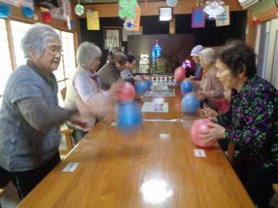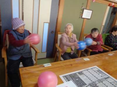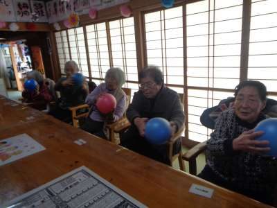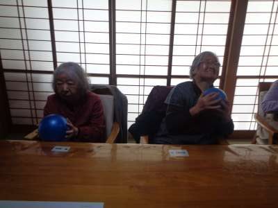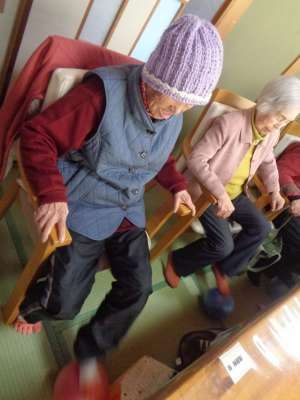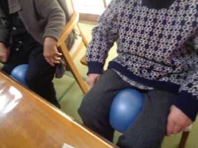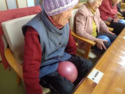 ボールを足でコロコロ転がし、転倒予防を防ぐ為