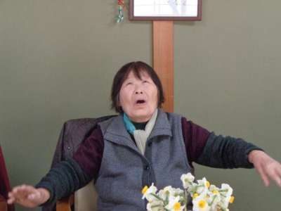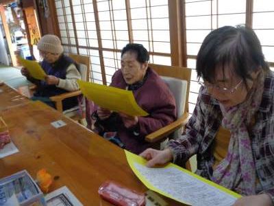 幸せの幸望庵では、毎日口腔体操も兼ねて、唱歌や歌謡曲