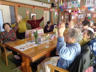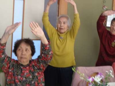 母達と体操しています