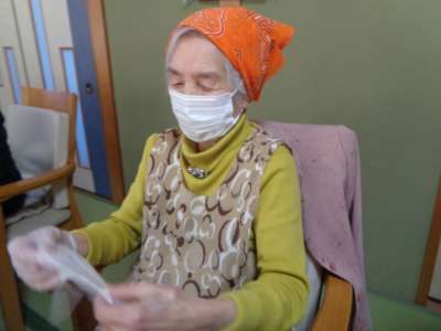 事前にアルコール消毒に、マスク・エプロン・グローブをつけて