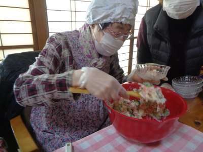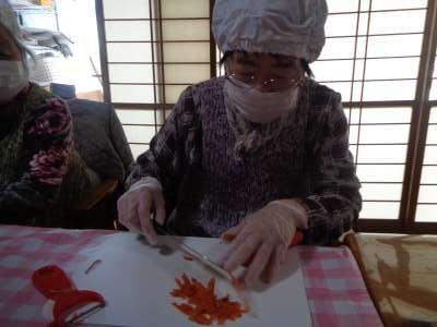 スタッフの指示に人参・きゅうり・竹輪と・・・・・・・どんどん刻まれていきます
