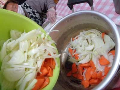 様々な食材も、母たちがテキパキと食べやすい大きさに