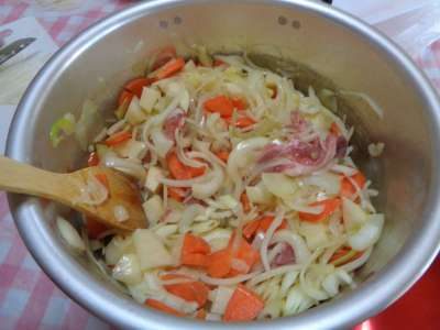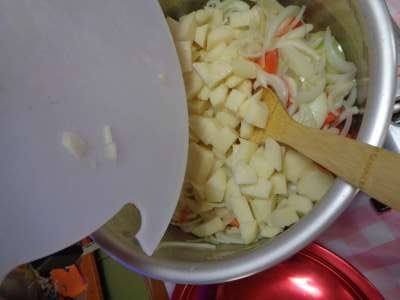 炒めていき、この後カレー粉を入れてカレーの完成です