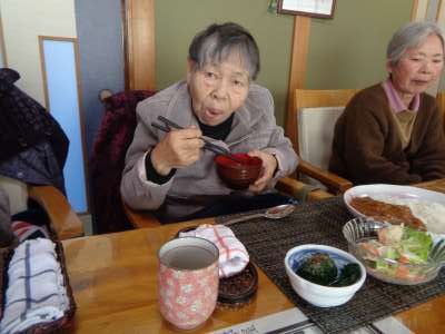 幸せの幸望庵玄関前に出てもらい、パチリ