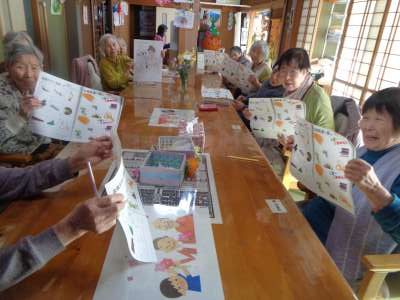 全員で今日行った間違い探しの用紙を持ってパチリ