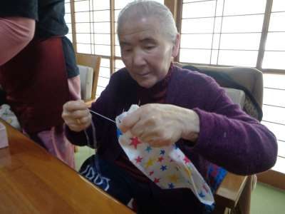 針と糸を持つ母達は、水を得た魚のように・・・・・・・・・・