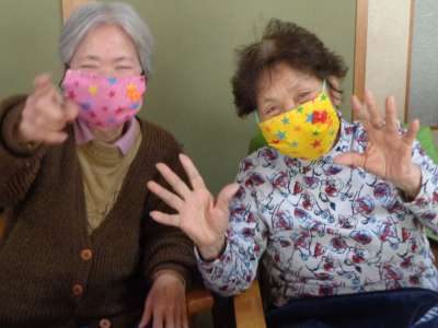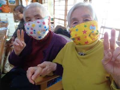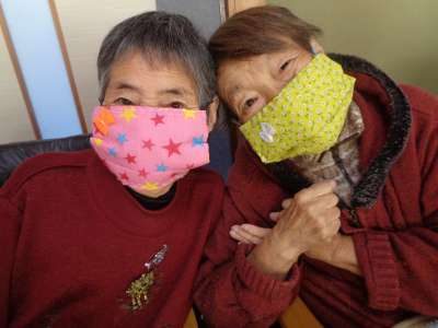 自分で作ったマスクに、母達 大はしゃぎ・・・