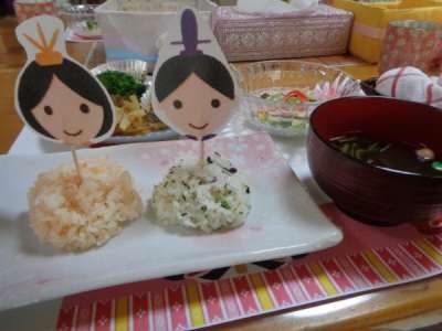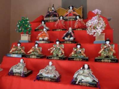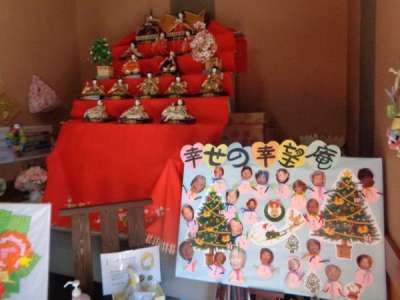 幸せの幸望庵玄関に飾ってあるひな壇が、利用者様を