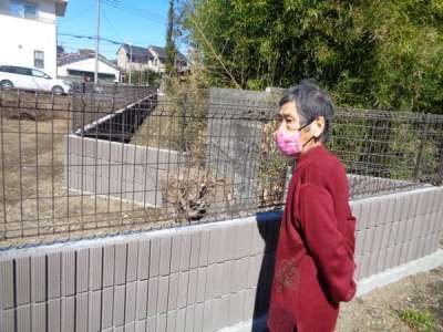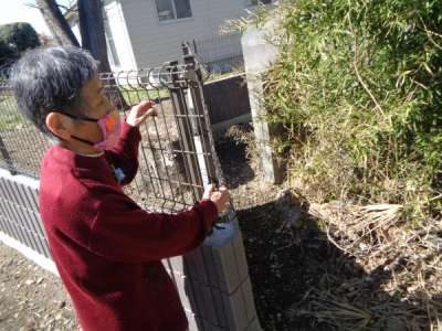 機能訓練で、庭の散歩を行っていると