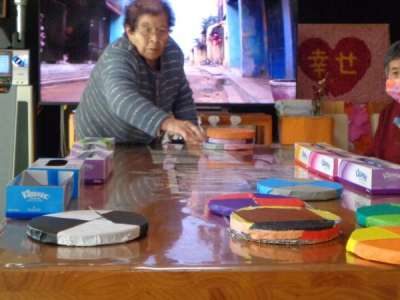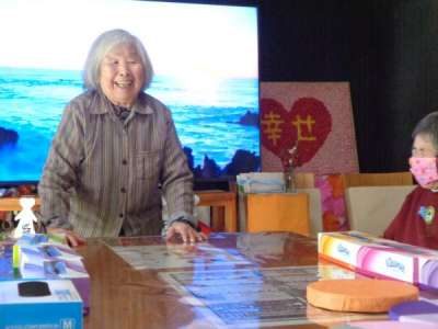 午後もテレビ体操から始まり、レクはテーブルカーリングです