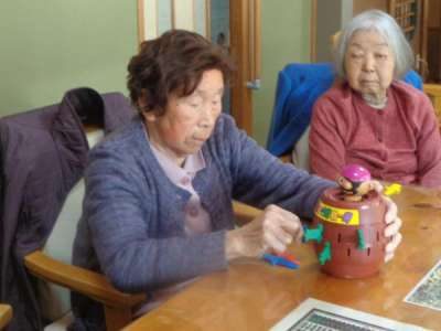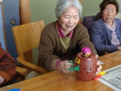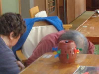 体操後、水分補給を行い黒ひげ危機一髪ゲームが始まりました