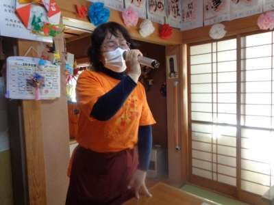 幸せ幸望庵ではいつも自慢の喉を披露している