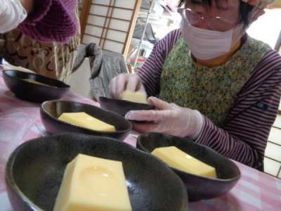 豆腐をお皿にうつす作業はコツをつかめば簡単