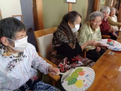午後レクは、うちわでリレーですダッシュ (走り出すさま)ダッシュ (走り出すさま)ダッシュ (走り出すさま)
