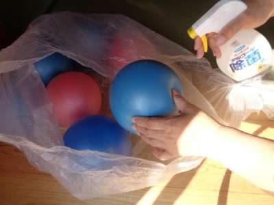 使ったボールも、コロナウィルス対策でアルコール消毒