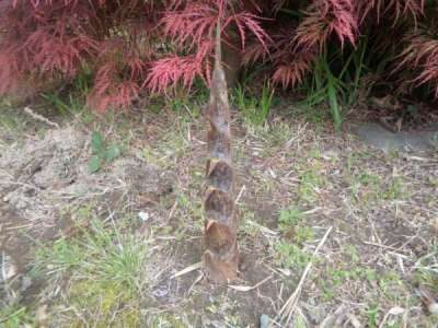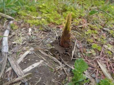 幸せの幸望庵の庭にタケノコがニョキニョキ