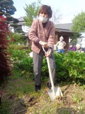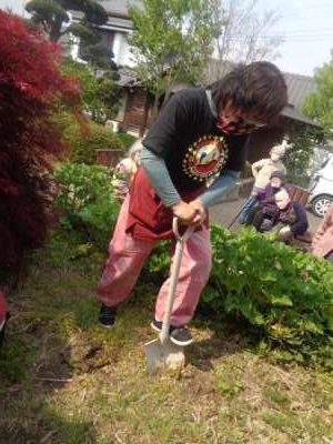 庭でタケノコ堀をしました