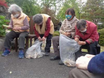 皮むきをする母達です