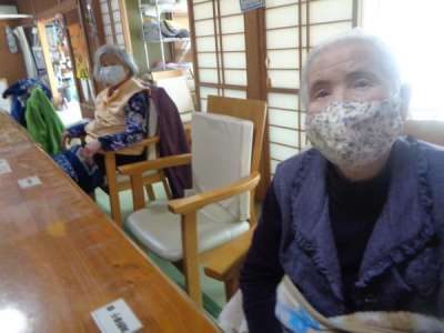マスクを各家庭で用意され、マスクをつけて送迎車の中に。