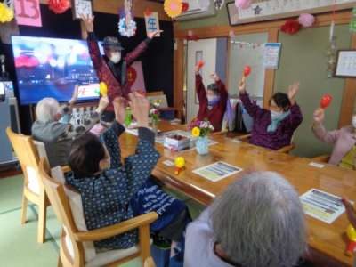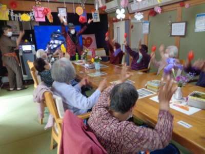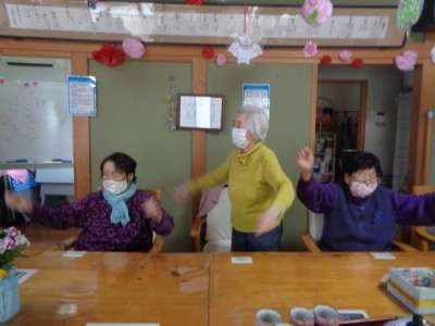 元気よく歌謡体操で身体を動かしましたわーい (嬉しい顔)