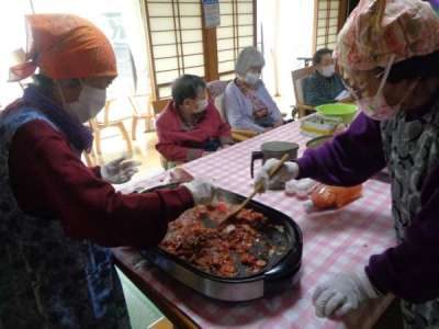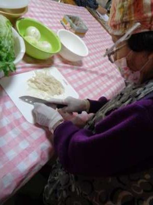 幸せの幸望庵の母たちの見事な包丁さばきにより、