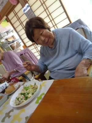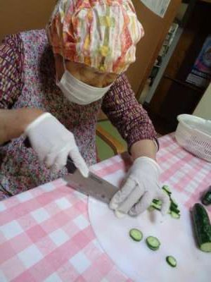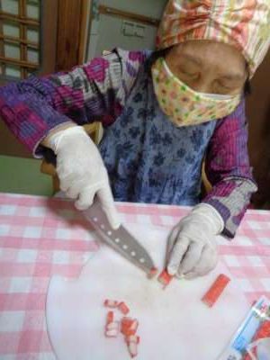 こちらの母は和え物の材料を🔪