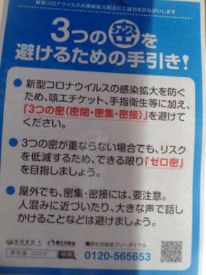3つの密にならないよう守っています