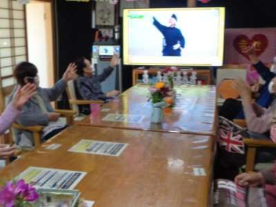 モニターを見ながら声に出して一緒に行います