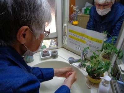 流水で手洗い