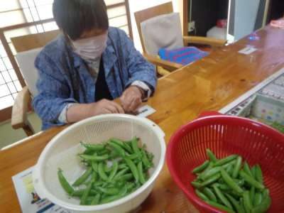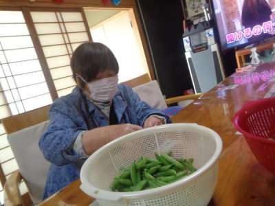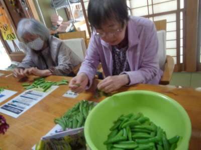 さやの頭としっぽの部分をもぎ取る動作が・・・