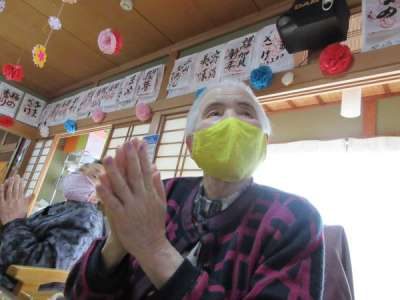 幸せの幸望庵での朝一番の歌謡体操の光景です