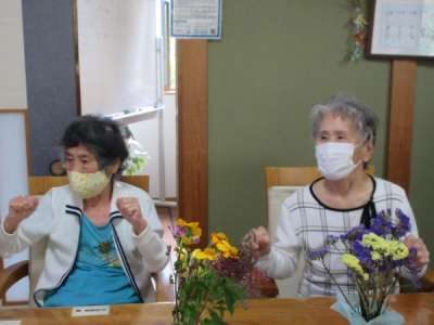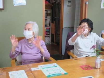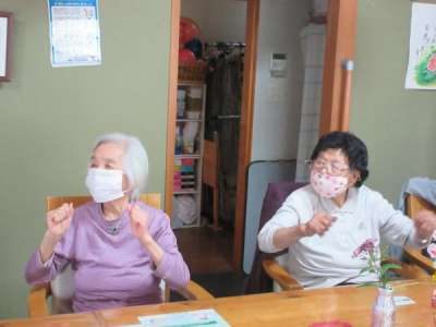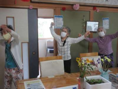 歌に合わせて体操します